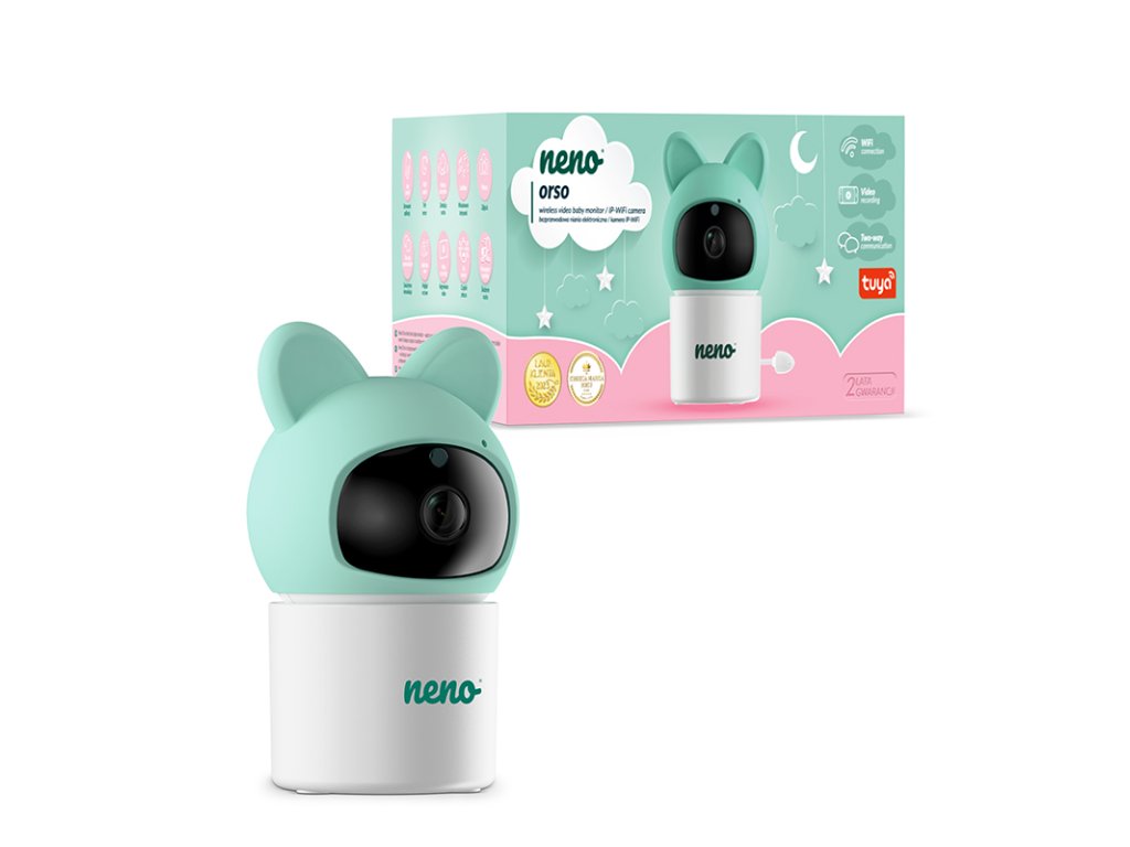 Profesionální IP-Wi-Fi video chůvička s pohyblivou hlavou a roztomilým designem! Neno Orso je inteligentní elektronická chůvička, která vám poskytuje spolehlivý dohled nad vaším miminkem ve dne i v noci. Díky pohybující se kameře s Full HD rozlišením, detekci pohybu a zvuku, obousměrné komunikaci, nočnímu režimu a intuitivní mobilní aplikaci získáváte maximální komfort a jistotu, ať jste kdekoli. Roztomilý silikonový kryt ve tvaru medvídka zkrášluje dětský pokoj, přičemž pod ním se skrývá elegantní a minimalistický design.Vlastnosti: