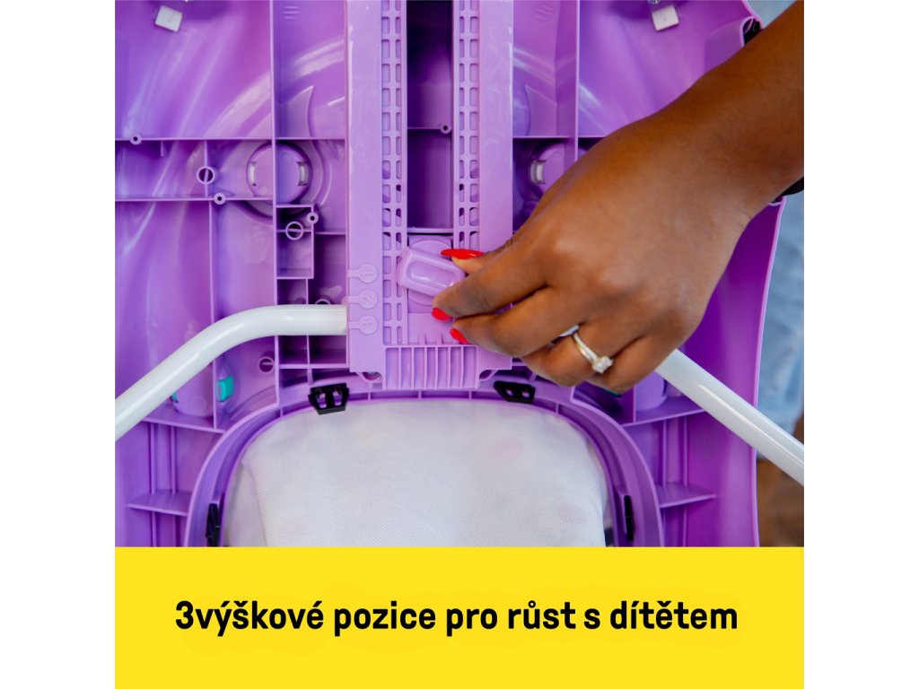 Zamilujete si 3 různé nastavitelné polohy výšky, bezpečnostní prvky a pohodlné skladování. Jednoduše položte naplocho, když se nepoužívá. Otřete dočista vlhkým hadříkem a jemným mýdlem, sedátko lze prát v pračce.