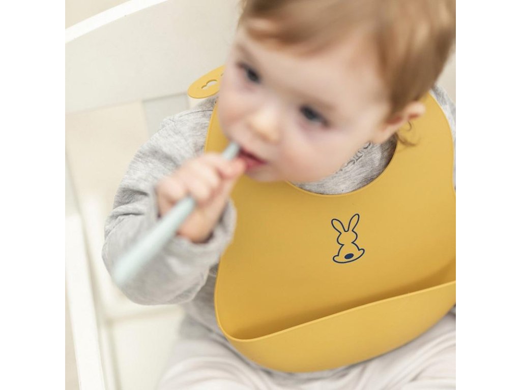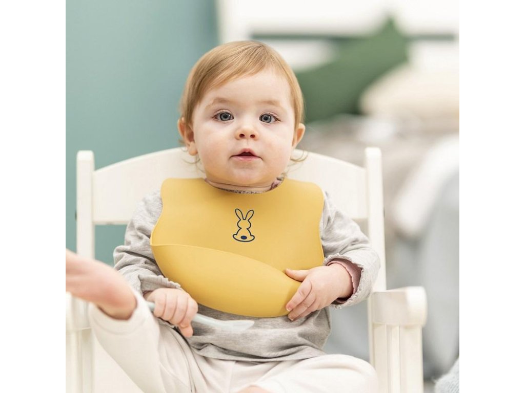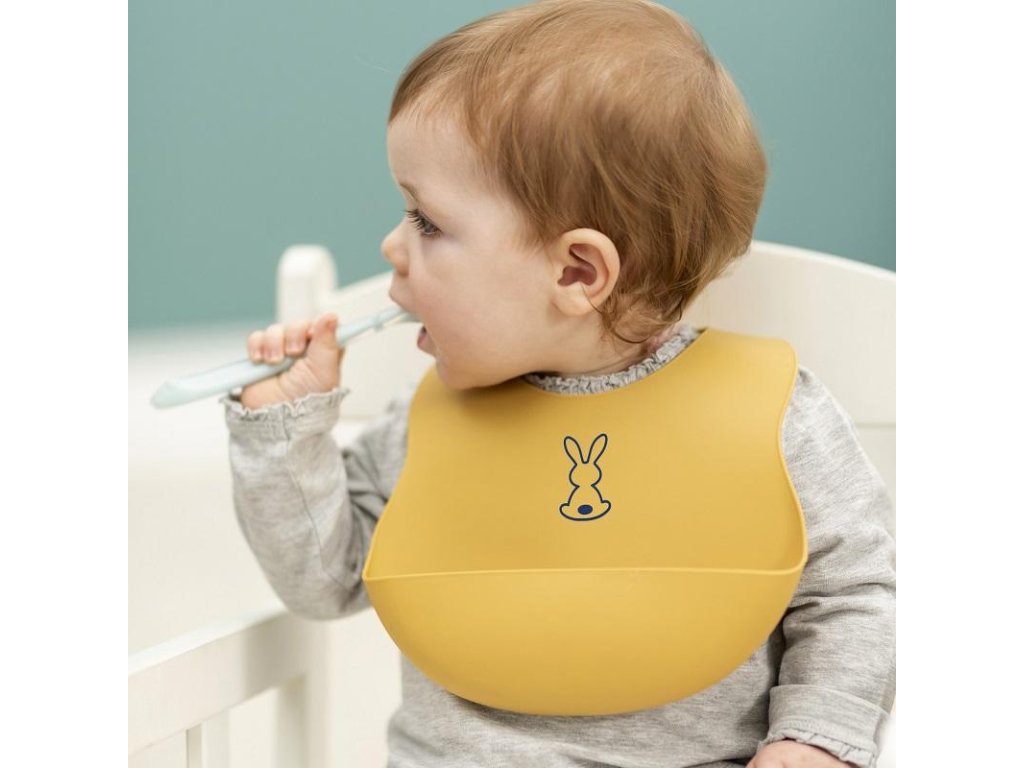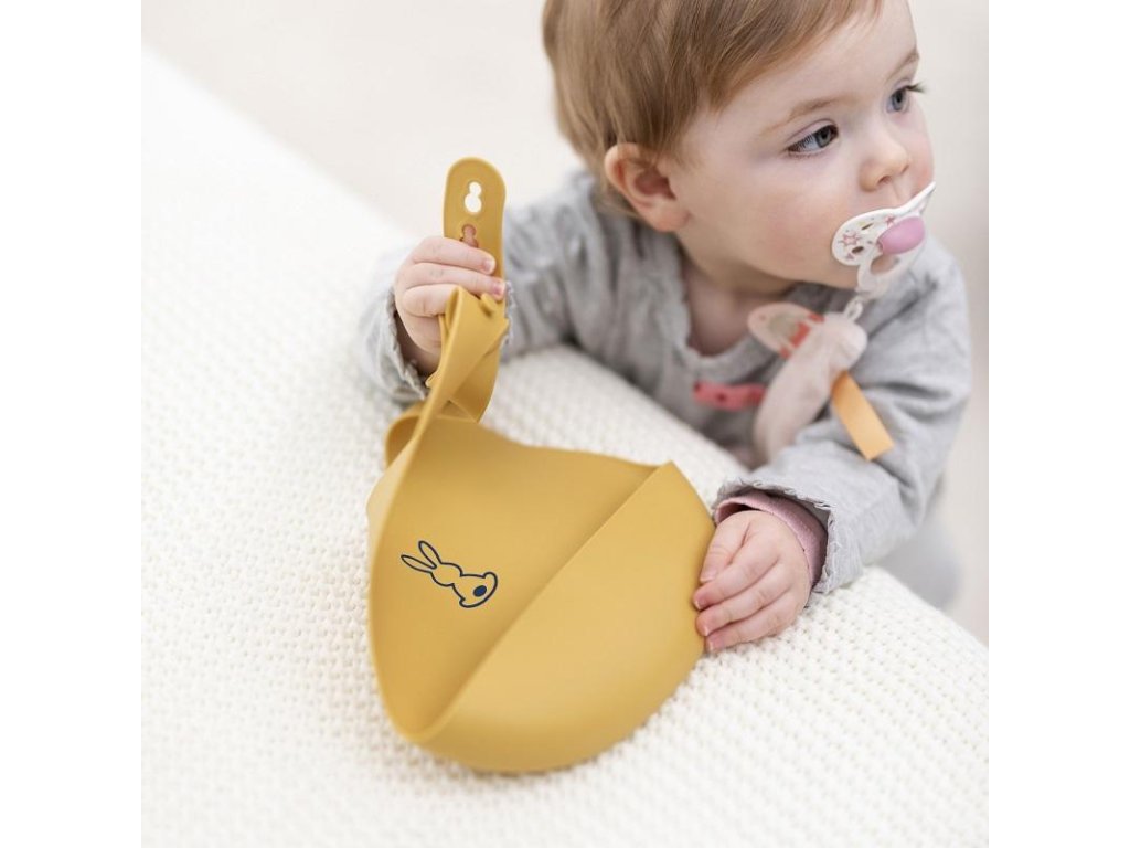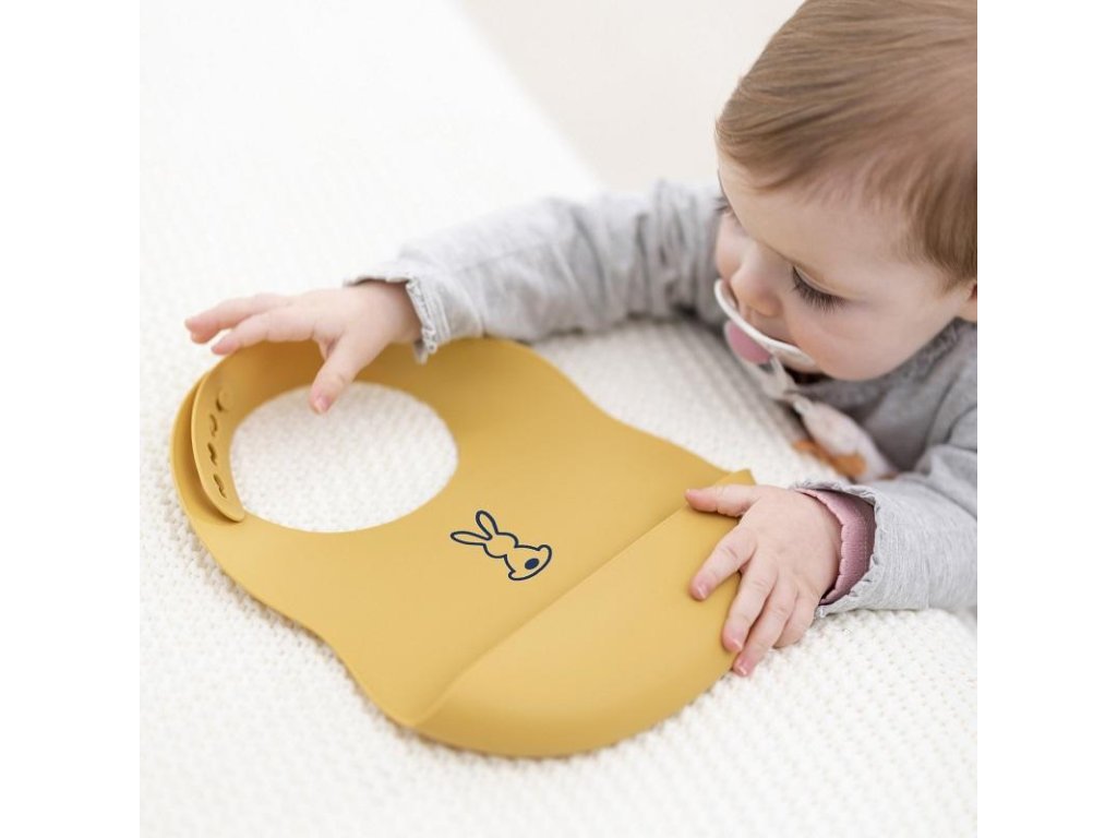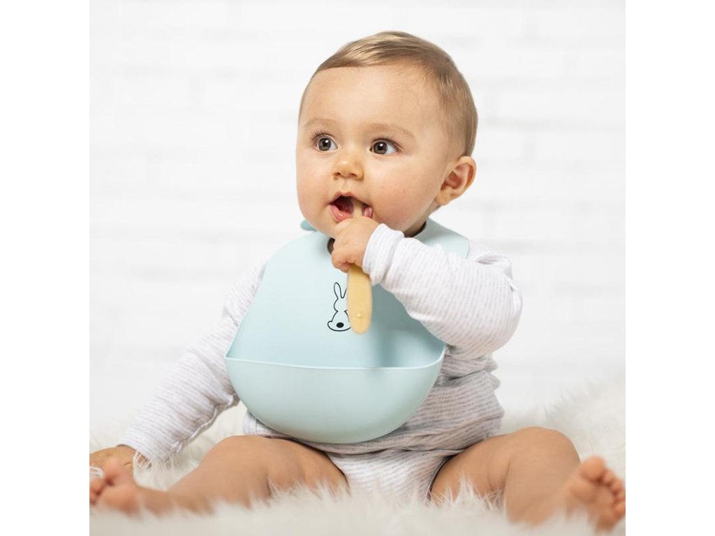 Dětský silikonový bryndák Nattou se zapínáním vyrobený z pružného silikonu s motivem roztomilých králíků a praktickou sběrnou částí zajistí krmení a jedení vašeho děťátka bez zbytečného stresu z nepořádku.Vlastnosti: