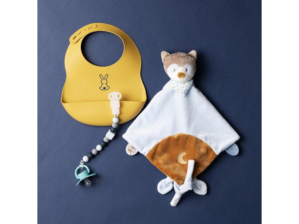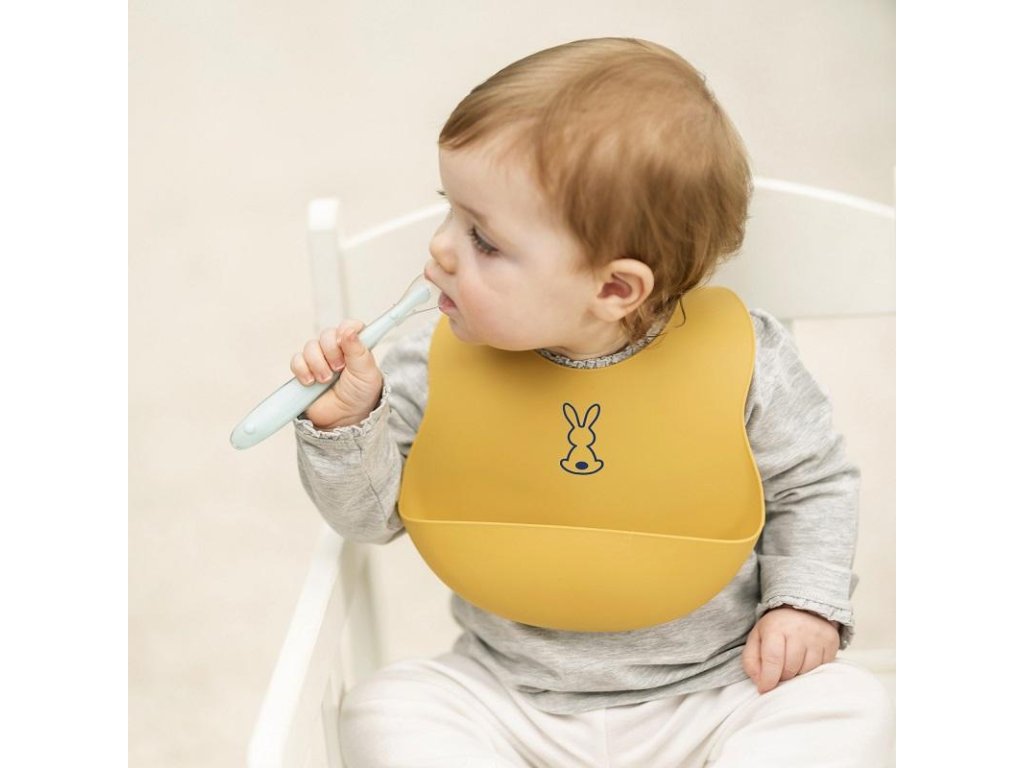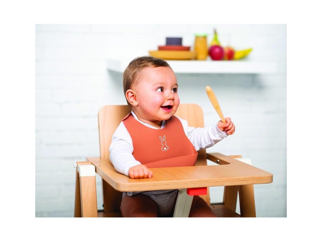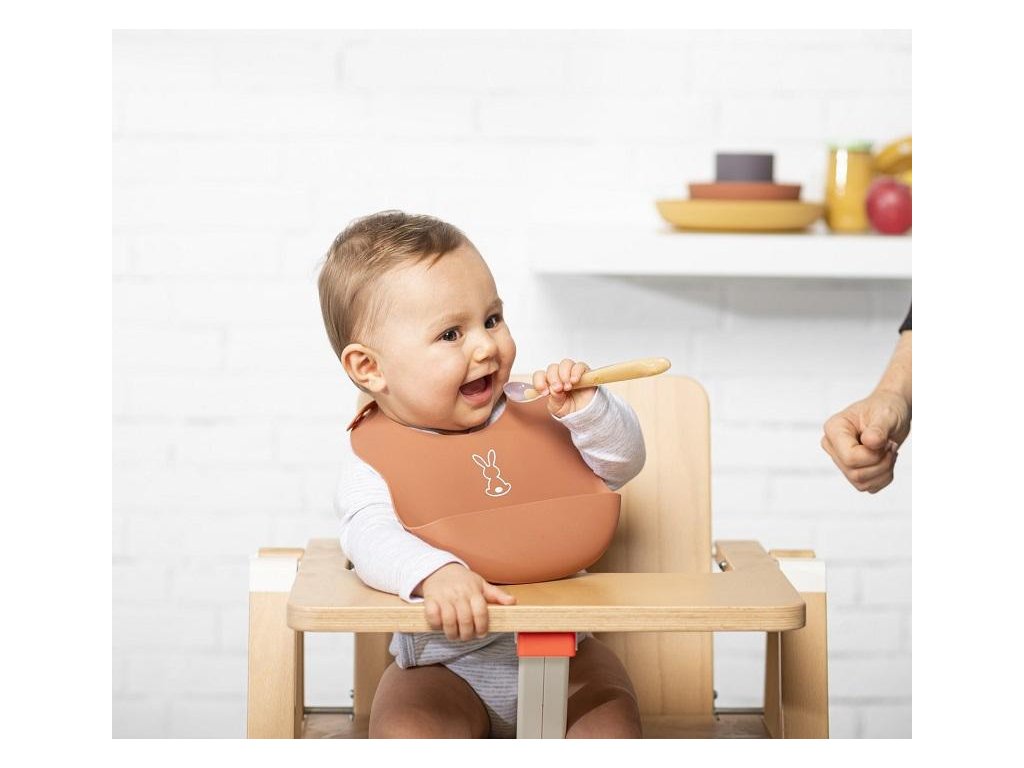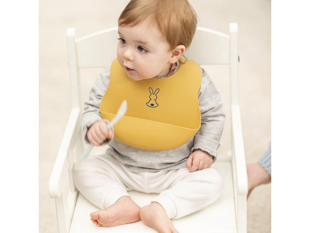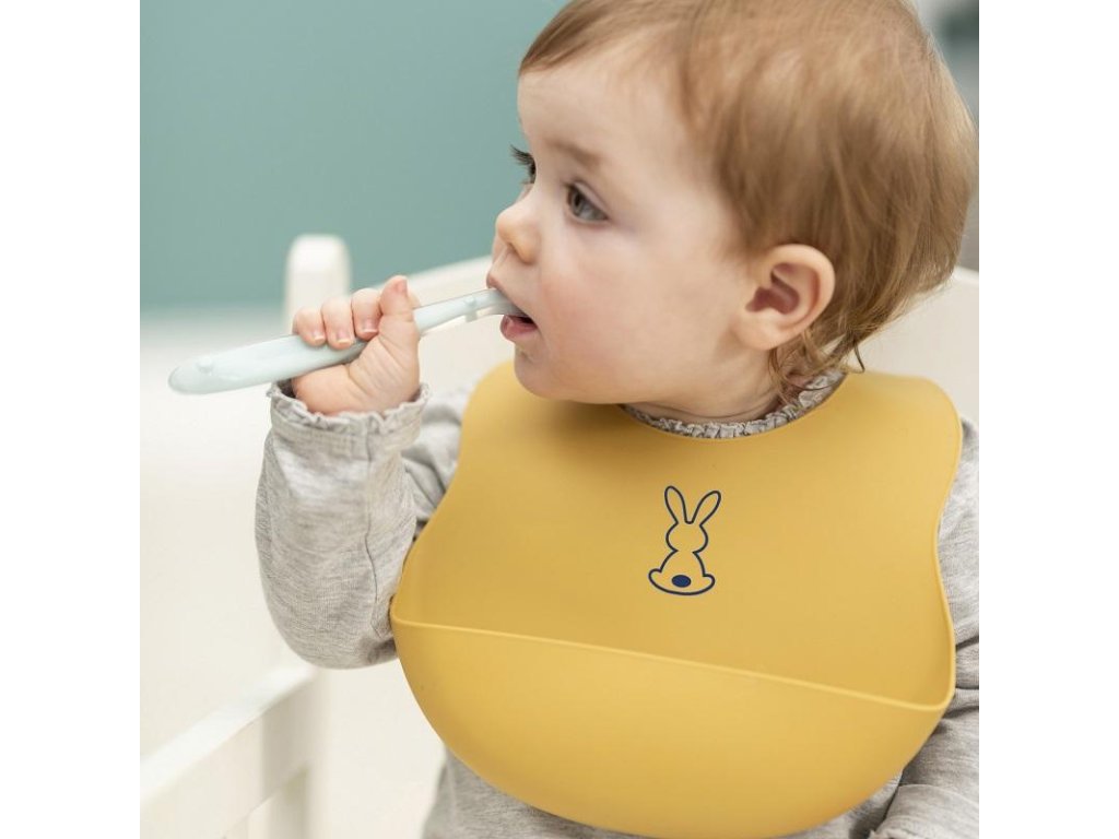 Dětský silikonový bryndák Nattou se zapínáním vyrobený z pružného silikonu s motivem roztomilých králíků a praktickou sběrnou částí zajistí krmení a jedení vašeho děťátka bez zbytečného stresu z nepořádku.Vlastnosti: