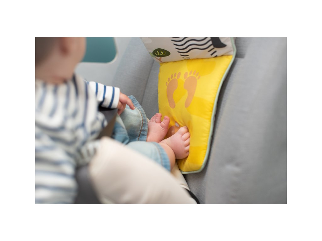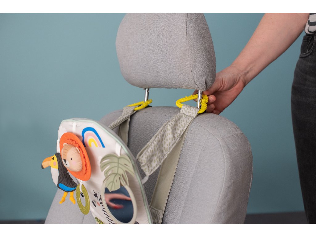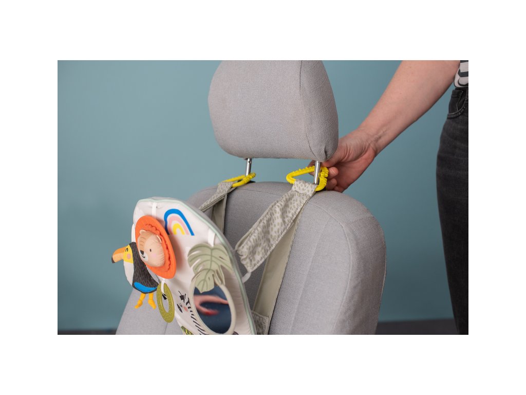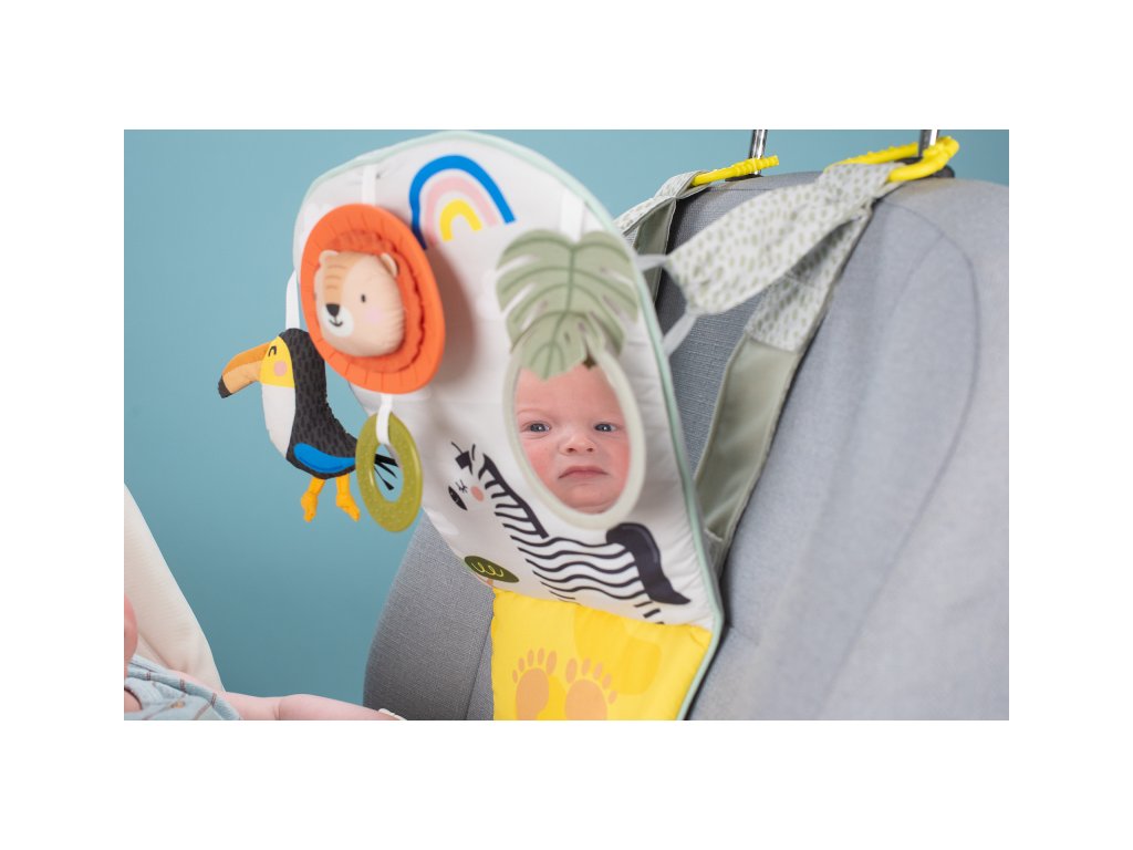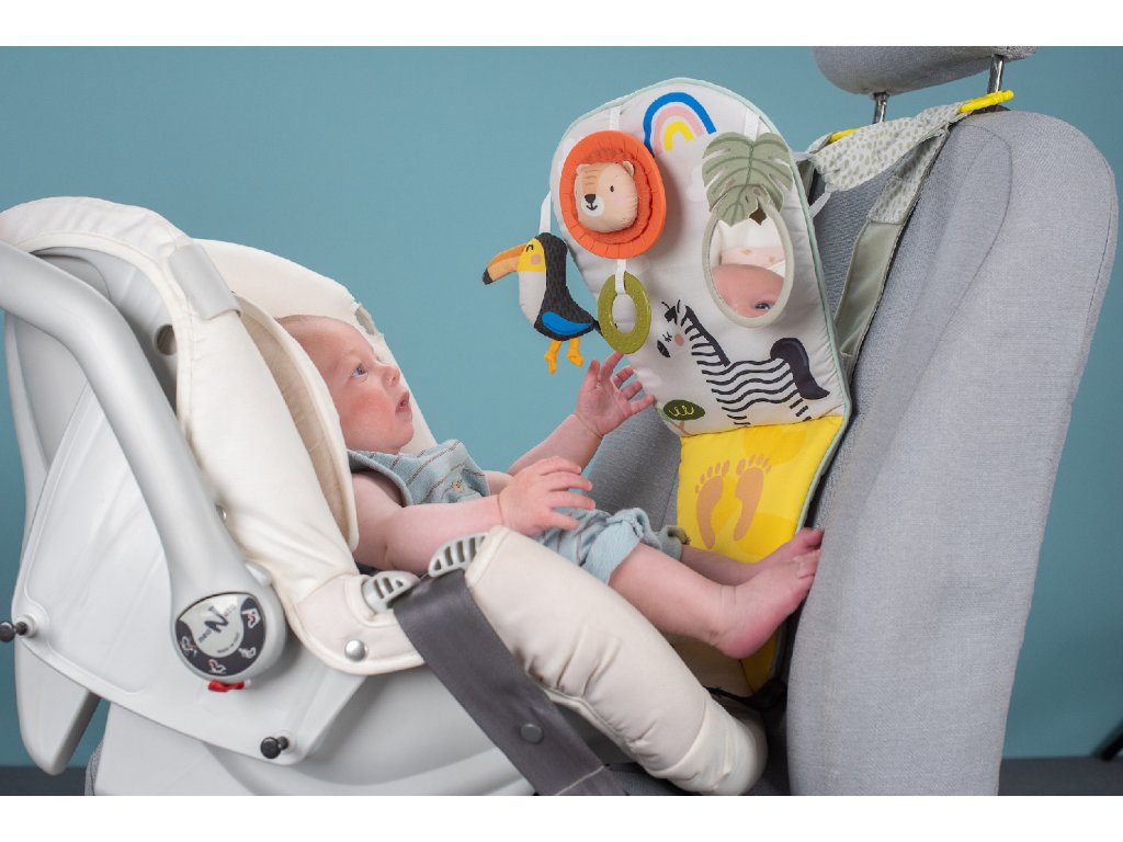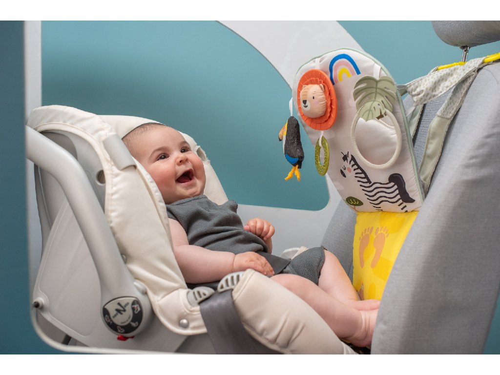 Dětský hudební pultík do auta Taf Toys Savana - hrací pultík do auta Taf Toys s hudbou a světélky zabaví vaše miminko na cestách autem a zajistí vám klid při řízení. Pultík se připevňuje na sedadlo nad autosedačku proti směru jízdy. Hudbu i světýlka dítě aktivuje kopáním svých nožiček do spodní části pultíku. Dítě se tak učí příčině a následku a rozvíjí své motorické dovednosti. Tři zavěšené hračky - chrasticí tukan, cinkající lev s kousátkem a bezpečné zrcátko - lákají ke zkoumání a podněcují rozvoj smyslů dítěte. Pultík snadno připevníte s pomocí plastových kroužků na opěrku hlavy na sedadle před dítětem. Baterie 3xAG13 (LR44) jsou součástí. Vhodné od narození.Doplňkové parametry