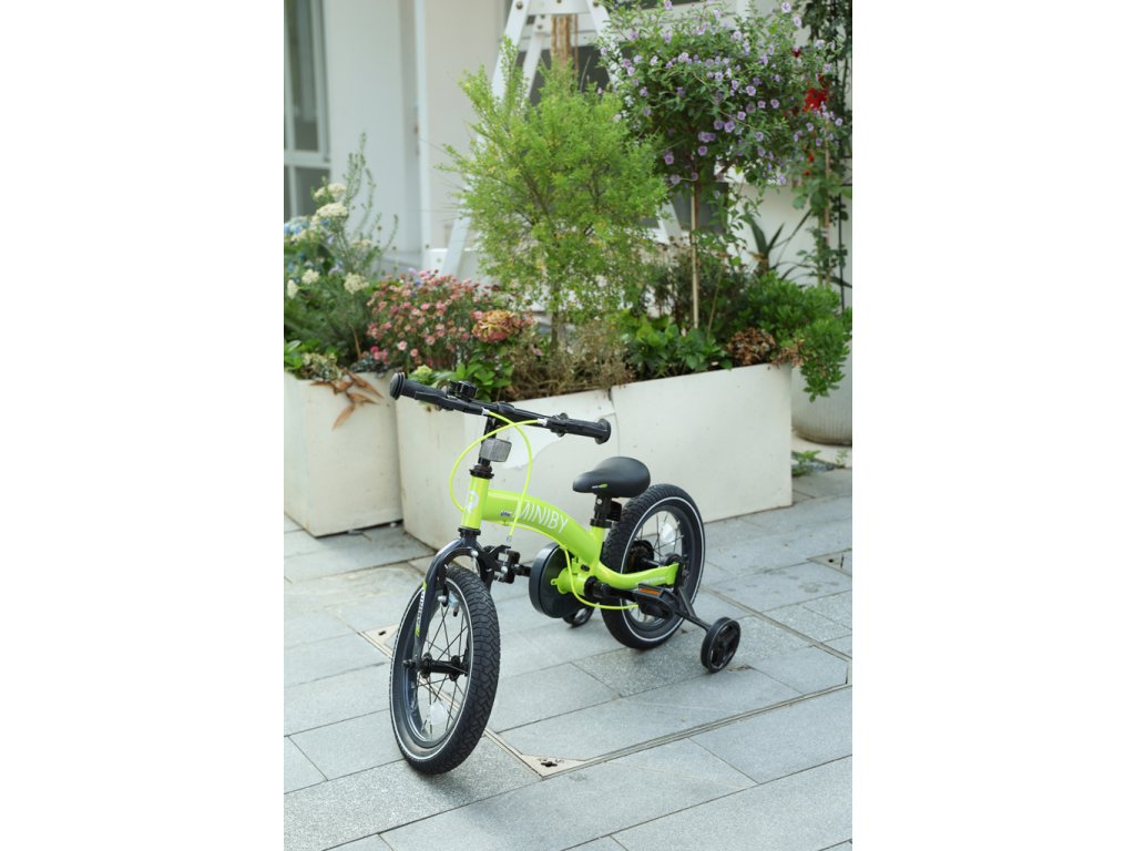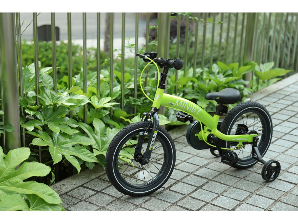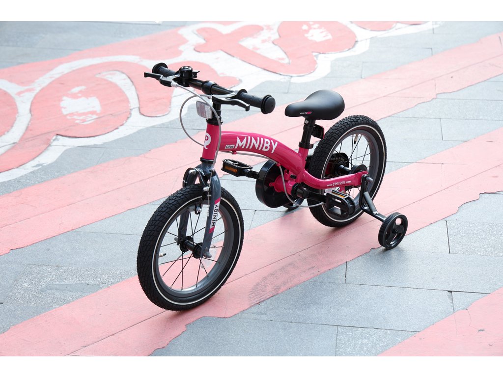 Mezi bezpečnostní prvky patří uzavřený ochranný kryt řetězu, odnímatelné pedály, tréninková kolečka a dvojitý brzdový systém.