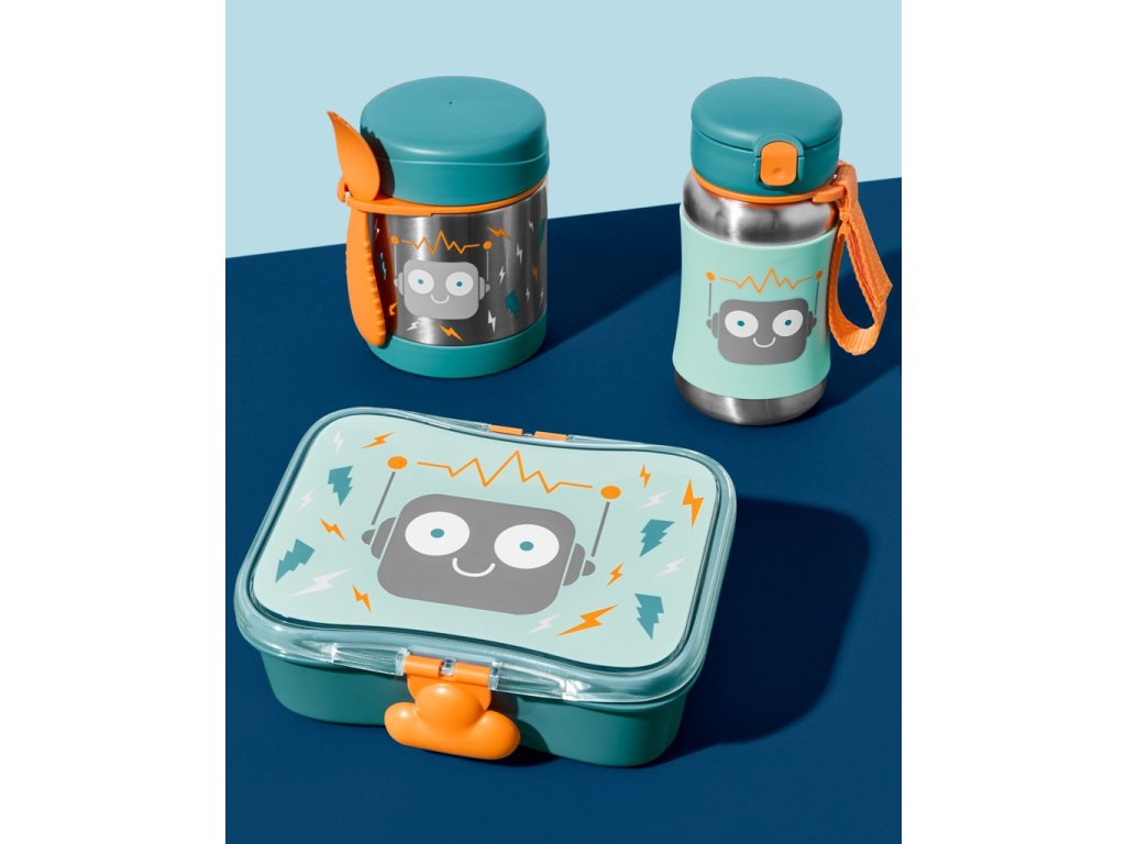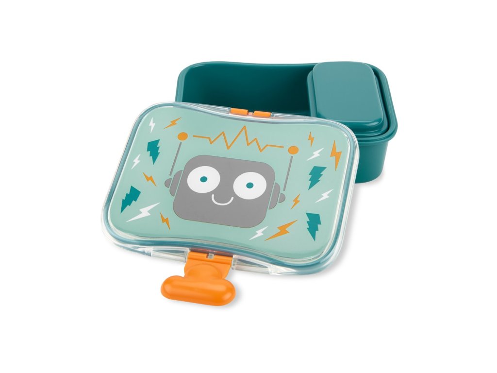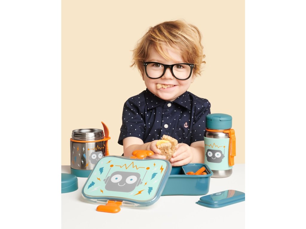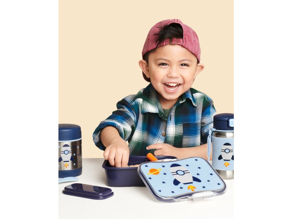Dětská krabička na svačinu SKIP HOP Spark Style 700 ml 3 r+ - díky veselým designům, pomocí kterých vyniknou malé osobnosti, si děti tuto sadu „velkého dítěte“ zamilují. Je ideální pro nošení jídla do školky, školy nebo na piknik v parku či při cestování. Skvělá 4-dílná souprava na podporu nezávislého pojídání, obsahuje menší nádobu na občerstvení a víko, které se úhledně vejde do krabičky na oběd. Roztomilé klipy umožňují, aby se krabička snadno otevřela, ale zároveň byla nepropustná. Nakombinujte si produkty ve stejném designu z celé kolekce Spark Style.Vlastnosti: