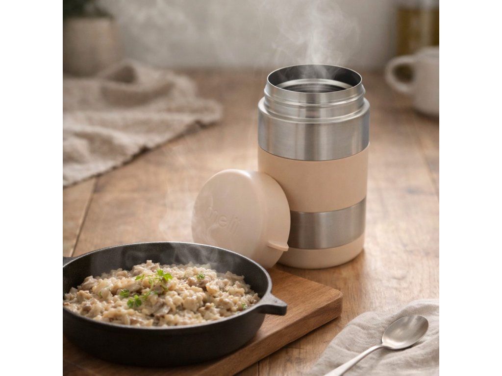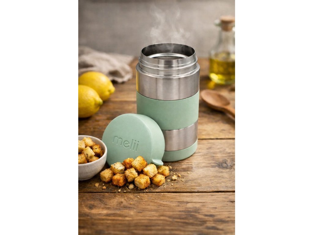 Termoska na jídlo kanadské značky Melii udrží pokrmy teplé nebo studené až 5 hodin, takže si můžete dopřát domácí jídlo přesně tak, jak ho máte rádi – teplé těstoviny či polévku v zimě nebo čerstvý salát v létě. Díky dvojité stěně a vakuové izolaci spolehlivě drží teplotu a zároveň zůstává na dotek příjemná.