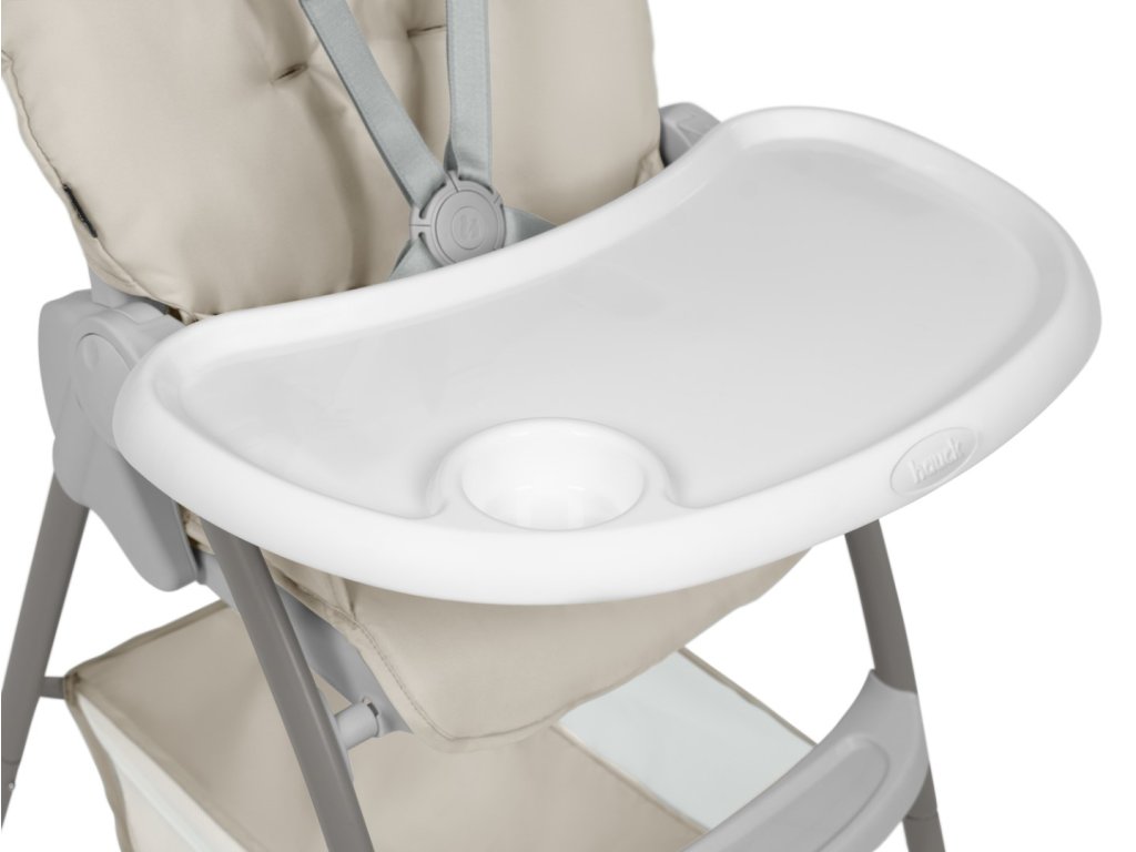 Pohodlná jídelní židlička pro děti od 6 měsíců do 15 kg. Prostorný tác se přizpůsobí růstu vašeho děťátka. Židlička má úsporný způsob skládání, ideální na doma i na cesty. Snadná na údržbu. S extra velkým úložným košem.