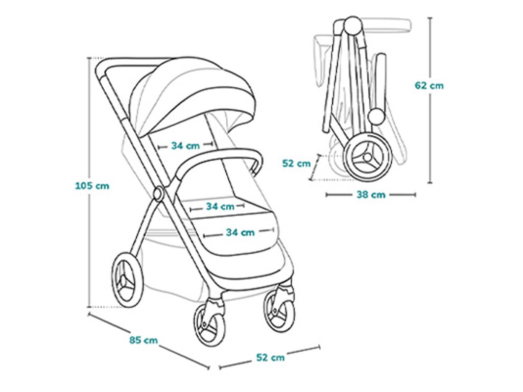 - rozměry rozloženého kočárku: 85 d x 105 v x 52 š (cm)