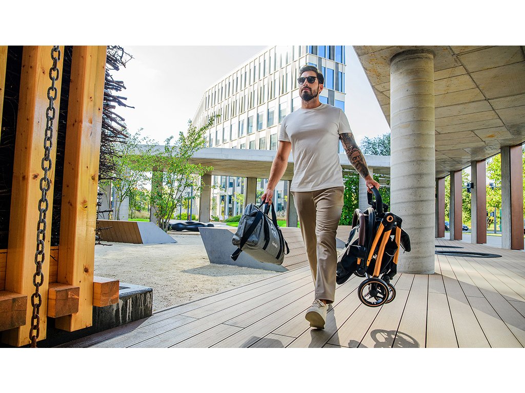 Jednoduché skládání: Kočárek je vybaven systémem auto-folding, což znamená, že po stisknutí tlačítka a uvolnění pojistky se sportovní kočárek automaticky složí do kompaktní velikosti. Vše se provádí jednou rukou.