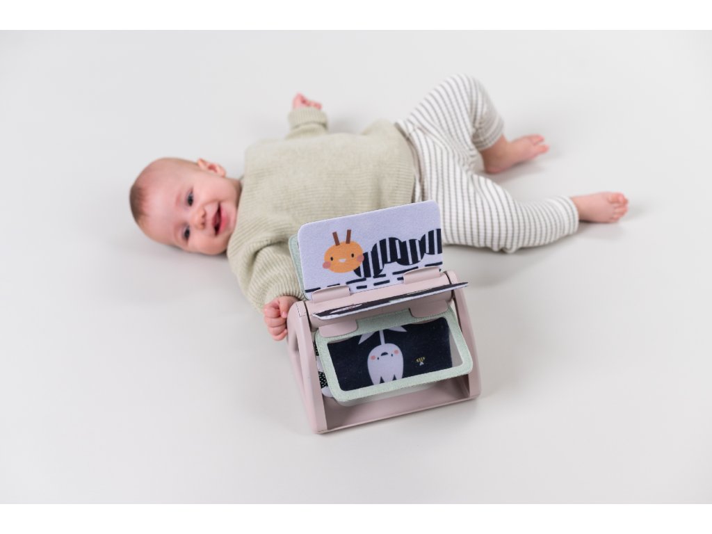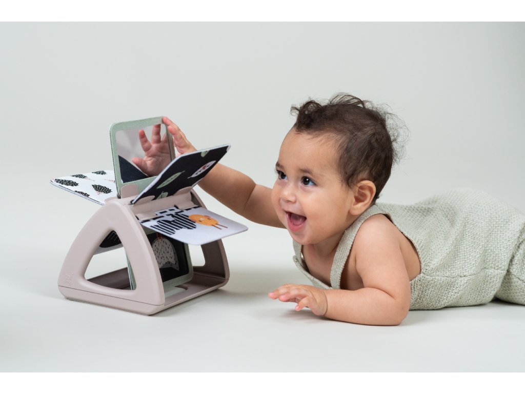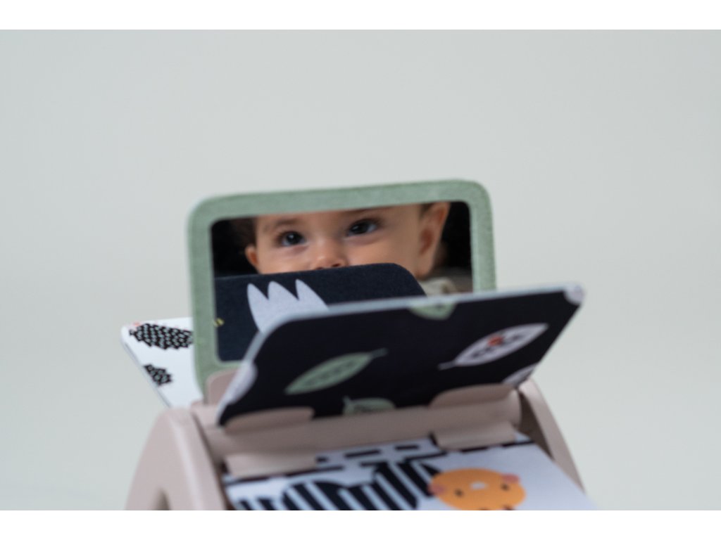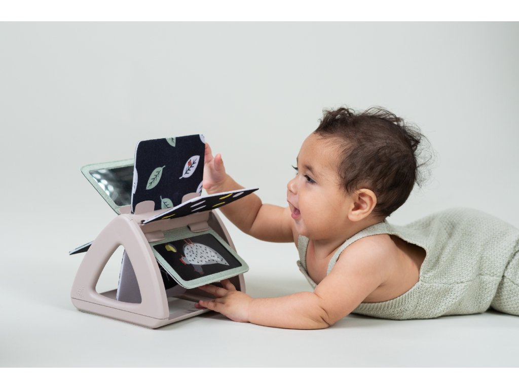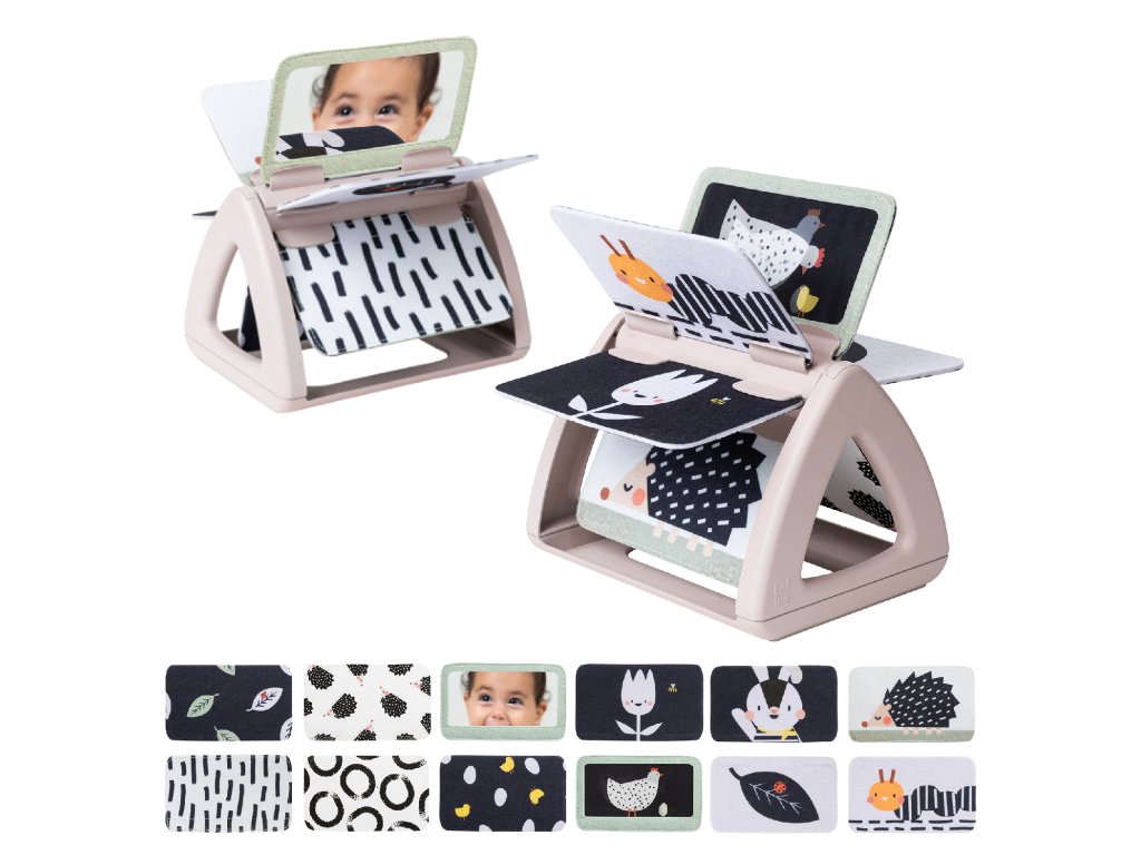 Dětská hračka otočná knížka Taf Toys Black & White - originální otočná knížka s krásnými ilustracemi motivů z přírody nabízí různé typy obrázků pro tři vývojová stádia dítěte: 0-2 měsíce: vysoce kontrastní, černobílé jednoduché obrázky, které podněcují rozvoj smyslů a emoční inteligence dítěte. Od 2 měsíců: výrazné obrázky, bezpečné zrcátko, hologramový třpytivý obrázek a chrasticí zvuk při otáčení jednotlivých stránek upoutají pozornost dítěte při hře na bříšku Od 6 měsíců si dítě dokáže samo vsedě otáčet a prohlížet obrázky, o kterých si můžete společně povídat Rozměry: 19 x 14,50 x 22 cm Vhodné pro děti od narození.Doplňkové parametry