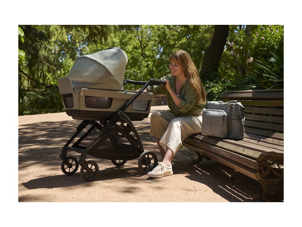 MULTIFUNKČNÍ TAŠKA s velkými přihrádkami, která pojme vše, co rodiče pro své dítě na cestách potřebují mít po ruce. Vybavena přebalovací podložkou a odnímatelným prostorným psaníčkem, které je ideální pro krátké výlety.
